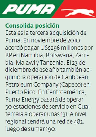 Puma Energy compró la operación de ExxonMobil de Guatemala, El Salvador, Honduras, Belice, Nicaragua y Panamá.