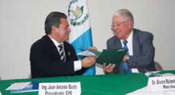 El presidente de CIG, Juan Antonio Busto y el rector de la Universidad Mariano Gálvez, Álvaro Rolando Torres.