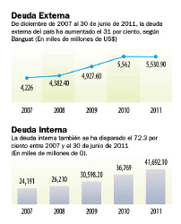 “La limitada flexibilidad fiscal derivada principalmente de una base tributaria baja y, más recientemente, el incremento de los pagos de intereses asociados con el aumento de la deuda neta del Gobierno general desde 2008, limita las calificaciones de Guatemala”.