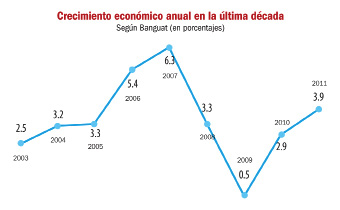Ni los más optimistas creen factible que Guatemala alcance un crecimiento económico gradual de hasta un siete por ciento en los cuatro años del Gobierno del Presidente Otto Pérez Molina, como el mandatario mismo ha ofrecido. Y aunque es válido soñar, la realidad del país es otra y no está para atraer masivas inversiones generadoras de empleo. El Producto Interno Bruto (PIB) mantendrá crecimientos modestos de entre 2.5 y 3.5 por ciento anual. Pero al restarle el aumento poblacional de alrededor de 2.6 por ciento por año, en términos reales ese dinamismo económico es casi nulo, explican destacados académicos.