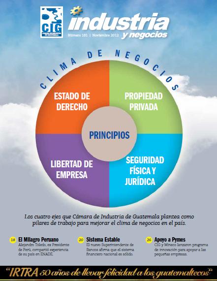 Cámara de Industria de Guatemala (CIG) y como parte de la propuesta “Progresando a través del Desarrollo Industrial”, compartida con diversos sectores de la sociedad y del Gobierno, plantea una ruta que permitiría mejorar el “clima de negocios”, como primer paso para atraer inversiones y generar puestos de trabajo formales y mejores oportunidades para la población. En esta edición, abordamos los puntos relevantes que componen el clima de negocios que el país debe mejorar.