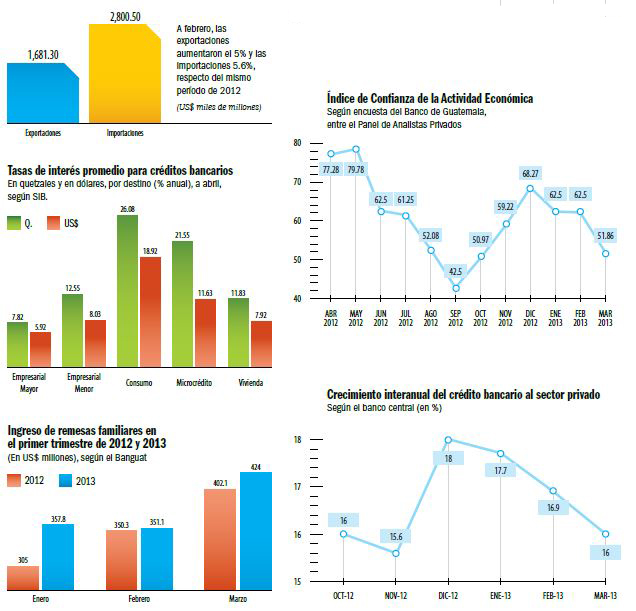 La economía guatemalteca se ha comportado estable en los primeros meses del año. El crédito bancario sigue creciendo a un ritmo interanual arriba del 15 por ciento, la inflación se mantiene en el rango programado por las autoridades monetarias mientras que las tasas de interés han alcanzado los niveles más bajos en más de diez años. Sin embargo, el Índice de Confianza de la Actividad Económica, que resulta de una encuesta mensual que realiza el Banco de Guatemala entre analistas privados, ha descendido.