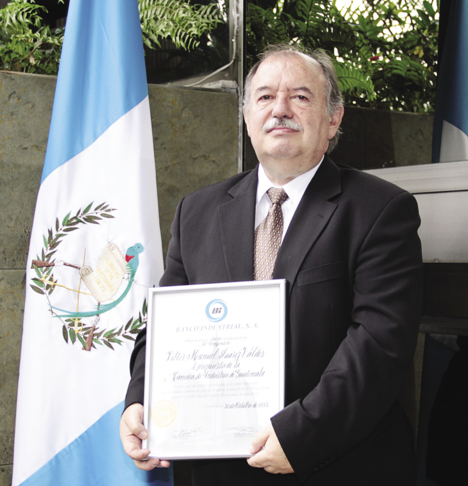 Víctor Manuel Suárez Valdés es ingeniero civil por la Universidad de San Carlos, con un posgrado en Administración de Empresas otorgado por la Universidad Francisco Marroquín. Es director general de Envases Layta, compañía con más de 50 años de haber sido fundada.