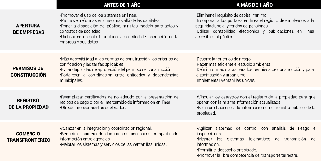 Por otra parte, en el informe se enlistan las principales recomendaciones de reforma que se realizan a la región para lograr mayor competitividad, entre estas: